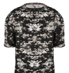 Badger Youth B-Core Digital Camouflage T-Shirt. 100% sublimated polyester moisture management/antimicrobial performance fabric. Badger sport shoulder for maximum movement. Self-fabric collar. Double-needle hem. Badger heat seal logo on left sleeve. Ships from Statesville, NC.